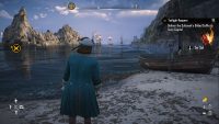 Player-versus-player and player-versus-environment events (PvP and PvE) also appear regularly on the servers. Here we can sink a legendary captain’s ship with other players, stop an armada of the Dutch Merchant Compagnie (DMC) or fight against each other for a legendary treasure. Only here and in the Helm trips can we damage other players’ ships – unlike in the beta, where we could be attacked anywhere. In the past few weeks, we can count on one hand the number of times other players have joined such a world event. Since matchmaking doesn’t always put you on a server with similarly leveled players, you can often find yourself hopelessly outnumbered in the legendary treasure hunt. If you die, you can be respawn directly at sea for a fee or at the last docked port. This doesn’t always work well: When we played the final mission, at times our progress was reset and at other times we were able to continue the battle. We were only able to complete individual missions after restarting the game because the corresponding interaction symbol simply wouldn’t appear. Other glitches from the beta regarding missing prompts for digging up treasure or over exposed cutscenes could apparently be fixed (see pictures 1 and 2 below). However, we did not detect any crashes or server problems. Speaking of interaction: The game supports cross-platform play and you can transfer your save game across all supported systems. Even in a group, we can only communicate with other players by using map markers and on-deck fireworks. The in-game text chat has not been available since the final beta started and a voice chat is not available.