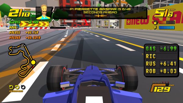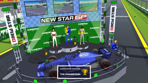 Graphically, New Star GP looks like it was made from one piece and is reminiscent of classic arcade racers. On the one hand, a lot of attention to detail went into the design of the cars, the animations and the elements off the track, but on the other hand you shouldn’t expect visual miracles from this indie team which consists of only around a dozen women and men. It’s unusual that there are no graphics options at all. The lack of anti-aliasing is very apparent, on console as well as on a powerful PC and this should be fixed. The game’s retro feeling is fueled by the decent 80’s style synth-heavy soundtrack, though it get’s a bit repetitive a little too quickly.