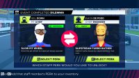 While the races are relatively easy at the beginning on the normal level of difficulty, New Star GP becomes significantly more difficult from the second era at the latest and the track design also changes from simple to more realistic track layouts. With each era, not only does the speed of cars increase (which is technically not entirely realistic as the cars got slower due to safety restrictions), but also the cost of upgrades. This makes the random events between the Grand Prixes even more precarious. A donation to a charity to better our reputation must then be compared to an investment in a better wing. Sometimes we also have to decide between a PR appointment and an important meeting with our race engineer. However, the mood barometer of each department can be easily raised again with a little pocket change and that’s also how most of the perks can be further increased. We are only allowed to hire new staff as part of these events. A job market would be a welcome addition to the managing aspect of career mode. The additional events mentioned are also becoming more relevant in order to be able to continually upgrade your car. Grand Prix victories alone are not enough.