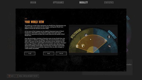I ended up between Humanist and Utilitarian and they were quite similar, with the main difference being the reason you might do the right thing, rather than the actual action taken. If I had known prior to my playthrough that the initial choice would have such a large impact I may have tweaked my answers somewhat. Even if I’m not sure the game knows the difference between Machiavellian and psychotic.