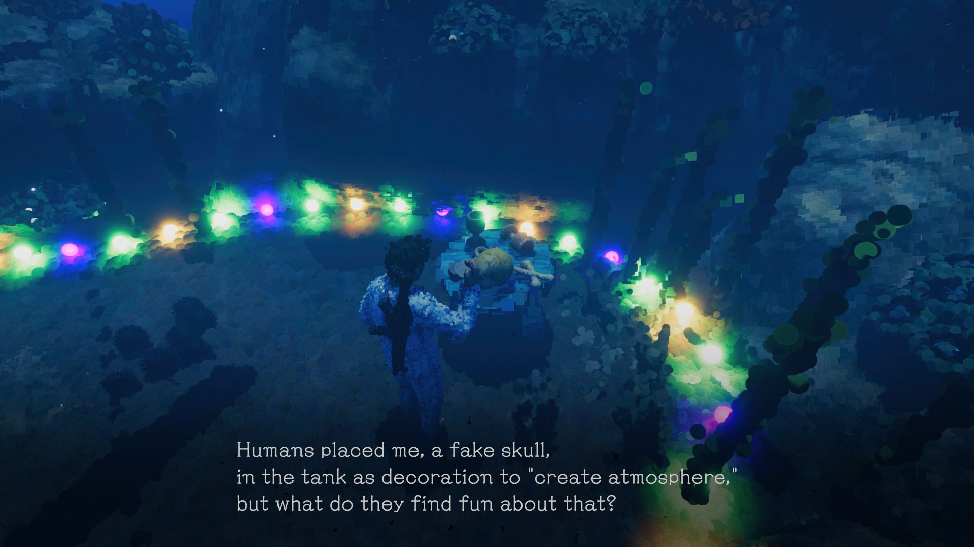 Elsewhere, we assist a group of fish, including a particularly entertaining moray eel, in escaping from an aquarium and to release them into the sea to their long-awaited freedom. Here, we face off with a shipwreck and its cannons. These scenes, even though they’re presented as such, aren’t proper boss fights, as we can’t die in them.