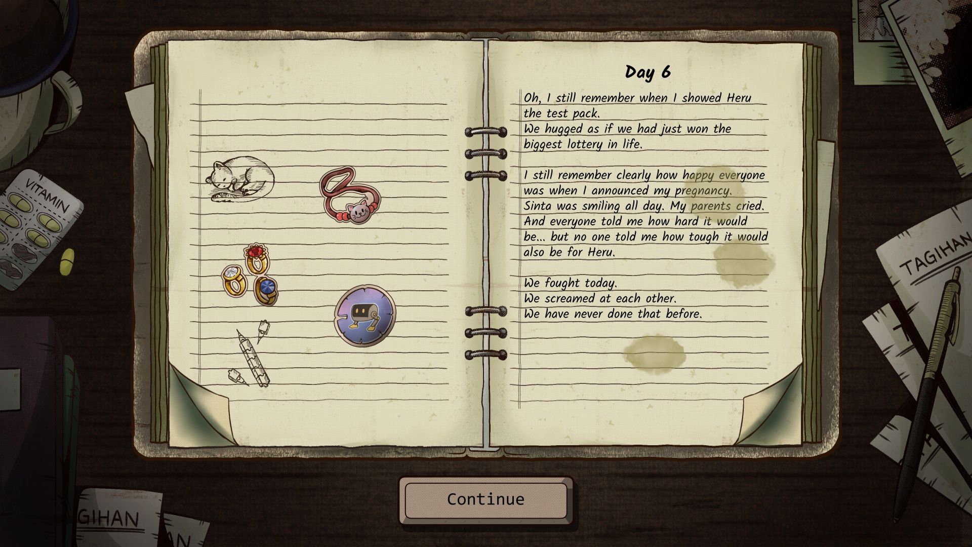 Dewi automatically engages in occasional chats with some characters, such as her best friend Sinta, whose dramatic story is told in short visual novel sequences. As a spark of hope in the dire setting, despite different religions and cultures, the two stick together through thick and thin, which Dewi records in her diary. Here, we can also add a few stickers ourselves, but we don’t have much influence on the overall narrative. We can easily miss or accidentally skip the dialogues at the toll booth due to following the toll collection process we learned. This is a shame, considering the high quality of the dialogues. The interface could use some adjustments to prevent this from happening. As the game progresses, the world around us visibly changes. Barbed wire fences appear, protest slogans are scribbled on walls and barriers, and the city becomes increasingly littered. Environments and characters are beautifully drawn, and the events are underscored by the appropriate music and sound effects. Based on the placeholders in the cutscene replay theater, we assume that there are at least four different endings. To reach the good ending after around three hours of play, all you need to do is to balance out your decisions between the benefit to your own family and to society. The game has been available on Steam for PC since October 28th for €11.79/£9.99/$11.99 with a limited-time 18% launch discount, in English and Indonesian.